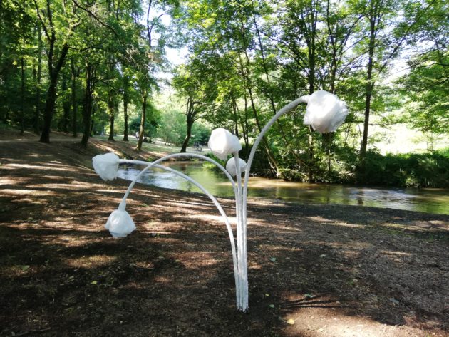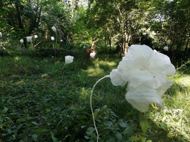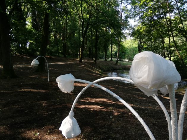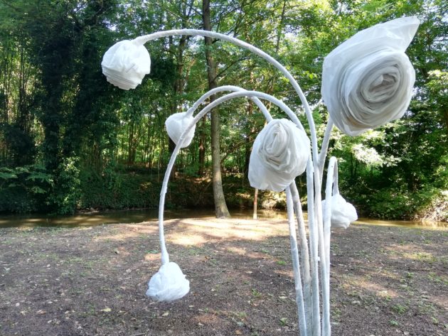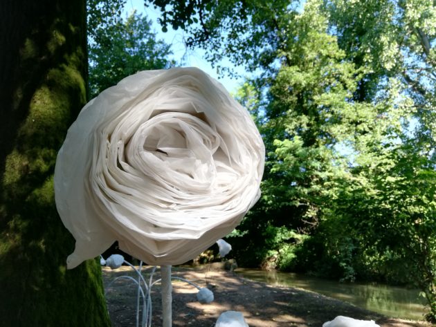 Fiori bianchi, alti come persone. Sono fatti con sacchetti di plastica riciclata e da qualche giorno punteggiano il Parco della Vernavola di Pavia. Si distinguono fra il verde di alberi e foglie, la gente si ferma a guardarli, sembrano apparsi dal nulla. Le reazioni sono diverse. Qualcuno fotografa, qualcuno commenta entusiasta. C’è chi apprezza e chi è perplesso. Tutti sono incuriositi. È la mostra “Per fare il mare ci vuole un fiore”, firmata dall’artista Claudia Borgna e voluta dall’assessorato alla cultura della città lombarda e che durerà fino al mese di ottobre. “Un’occasione per incentivare il rapporto con il parco”, spiega Borgna a IlFattoquotidiano.it