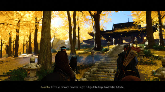 Se ad esempio avvisterete un uccellino giallo, il gioco vi inviterà a seguirlo fino a scoprire un luogo “segreto”: qui potrete sedervi a contemplare il paesaggio e tramite varie opzioni comporrete un Haiku. L’Haiku composto, a seconda delle parole utilizzate, vi regalerà una fascia diversa, che può cambiare statistiche ed estetica del protagonista: questo è uno dei tanti piccoli tocchi di classe che sparsi per l’isola di Tsushima renderanno l’esperienza di gioco più intima e vi calerà totalmente nell’ambientazione del giappone feudale che anima questa esclusiva di Sony.