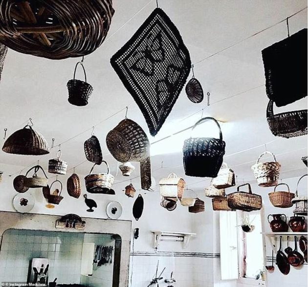 In un’altra stanza il letto è contornato da una testata di raso viola. Mentre uno dei sette enormi bagni della casa appare nel celebre selfie di Madonna in semi topless. Infine ecco la sala, anzi le sale della musica, dove i ragazzi suonano chitarre e pianoforte come fossero in una vera accademia musicale. Una curiosità in mezzo a tanto lusso Madonna&Co amano molto appendere al soffitto una quantità elevata di oggetti. In quella che sembra essere una sala da pranzo penzola dall’alto un numero infinito di cestini di vimini in quello che sembra più che altro un set da film horror. Madonna ha dichiarato di essersi un po’ annoiata e rattristata nel vivere in questa casa, tanto da volersene disfare mettendola in vendita. Ad oggi, però, non sembra che l’idea sia andata a buon fine.