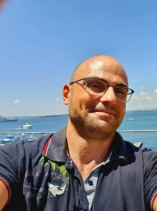 Emanuele Battista di fronte al Mar piccolo nella Terrazza di nonnAnna