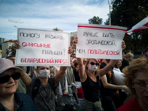 È sabato pomeriggio. La gente siede fuori dai bar, beve o mangia. La temperatura lo permette ancora. Telegram suona in continuazione. I vari siti di informazione non ufficiali (ovvero non governativi), pubblicano sulle loro pagine del social criptato. Sono diventate virali, contando più di 2 milioni di persone. È uno dei simboli di questo cambio. L’appuntamento è alle 3 del pomeriggio in piazza di fronte al palazzo del comune di Minsk. Inizia così la marcia delle donne. “Visto che la polizia si comporta in maniera violenta contro gli uomini, ci siamo attivate noi donne, sperando che si comportino meglio. Siamo pacifiche. Il presidente non ha capito che è un punto di non ritorno e più protestiamo più la gente si unisce” commenta Irina, 32. Sono le donne ad essersi messe in gioco per proteggere i propri mariti, spesso picchiati a sangue e torturati.