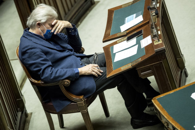 Il premier Giuseppe Conte illustra in aula alla Camera le misure contenute nel nuovo Dpcm e Vittorio Sgarbi si abbiocca. La scena è stata immortalata dai fotografi ed è inequivocabile: il critico d’arte si è appisolato seduto al suo posto. Poco dopo, risvegliatosi, Sgarbi ha avuto un botta e risposta con il presidente della Camera, Roberto Fico. Il critico d’arte, infatti, era impegnato nel suo intervento in aula quando Fico gli ha chiesto di sistemare la mascherina, finita sotto al naso. Sgarbi risponde subito: “Mi dovrò far fare un certificato medico, perché ho problemi respiratori e dunque sarei esentato dall’indossarla come prevede proprio l’ultimo decreto. Lo porterò a lei, signor Fico. Avrò la bocca libera, parlerò senza censura”. Il presidente dell’assemblea di Montecitorio, a quel punto, controbatte: “Va bene, lo porti. Ma adesso andiamo avanti che deve concludere”.