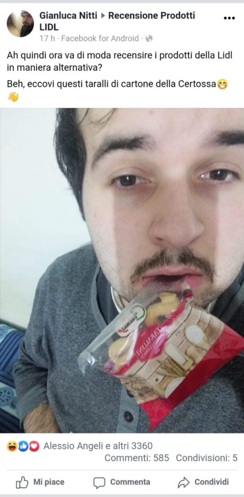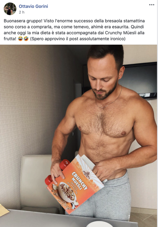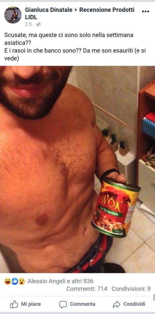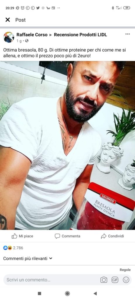 Posta una foto ammiccante mentre mangia bresaola e il gruppo di consumatori su Facebook diventa più hot di Colpo Grosso. Tutto il parapiglia fatto di toraci, pance, cosce e seni in bella vista è nato sulla pagina Recensioni Prodotti Lidl, quando un utente ha pubblicato un selfie dove tiene in mano una busta di bresaola. Apparentemente nulla di che. Solo che si osserva bene la foto, la posa è un po’ ammiccante e soprattutto la t-shirt del ragazzo protagonista è molto scalvata fino a mostrare una larga parte del muscoloso torace. Così, improvvisamente il gruppo Facebook dei consumatori Lidl si riempie di foto piuttosto piccanti. Un culturista è corso a comprare la bresaola ma essendo finita ha acquistato una scatola di muesli e poi si è fotografato mentre ne mangia un po’ a petto nudo.