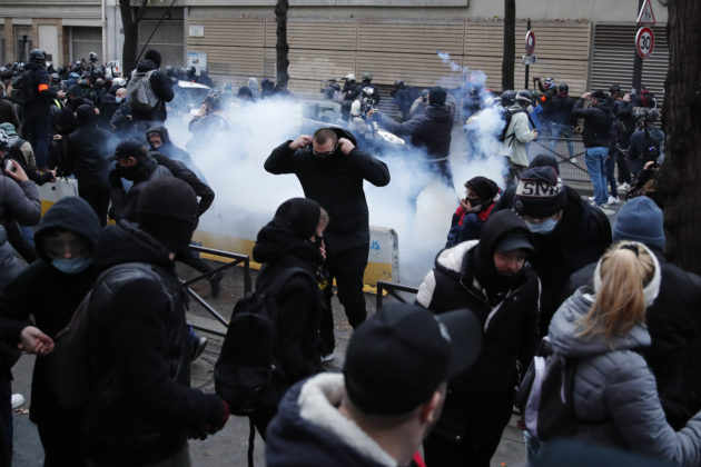 Parigi, nuove proteste contro la legge che vieta di filmare i poliziotti in azione: scontri tra i black block e gli agenti – LE IMMAGINI
