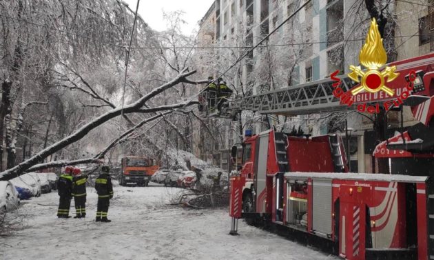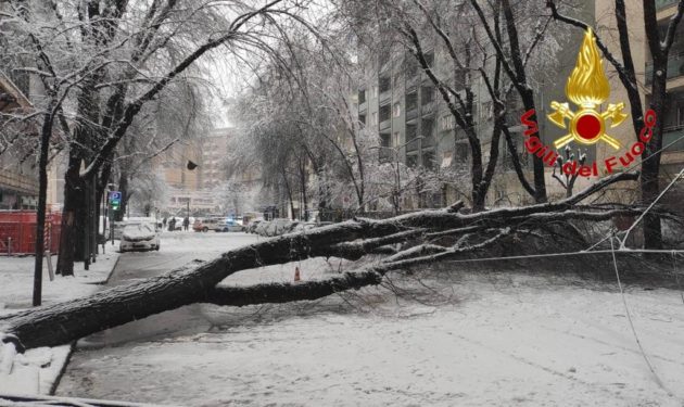 Alberi caduti a Milano: una donna ferita – Sono oltre 15 i centimetri di neve caduti nella notte sul capoluogo lombardo e nelle ultime ore gli interventi dai vigili del fuoco e della Polizia locale si sono intensificati a causa di alberi caduti e rami spezzati in diverse zone della città, ma anche di ponteggi e cornicioni resi pericolanti dal carico eccessivo. In via Raffaello Sanzio i tram sono rimasti bloccati stamane a causa di due alberi che hanno tranciato i cavi aerei.