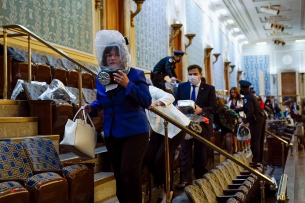 Le pistole puntate dentro l'aula, l'invasione di corridoi e uffici, i parlamentari con le maschere antigas e l'assalto all'ufficio di Nancy Pelosi: le immagini più significative di una delle notti più difficili per la democrazia americana