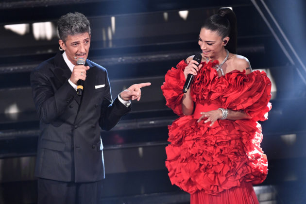 Ma il look più spettacolare in assoluto l’ha sfoggiato a notte tarda, quando ha duettato con Fiorello sulle note di “Trottolino amoroso“: Elodie ha fatto il suo ingresso con un altro rosso fuoco, anch’esso sempre di Gianbattista Valli. È un tripudio di sartorialità: maxi rouges arricciate sul corpretto e poi scivola giù liscio a cascata. Etereo, sofisticato, raffinato ed elegantissimo. A completare il look, Jimmy Choo, capelli raccolti e collier di diamanti coordinato al bracciale, sempre della collezione Serpenti di Bvlgari High Jewellery. Bellissima, assolutamente promossa.