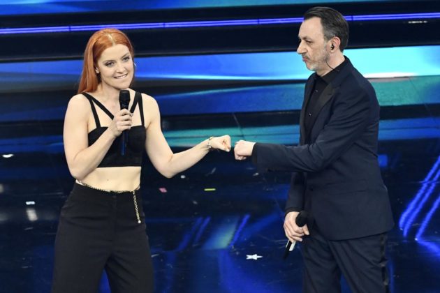 Orietta Berti: voto 9 (per il coraggio) – Solo lei poteva presentarsi con un total look di paillettes rosso fiammante, con una medusa ricamata. Con tanto di fard coordinato, che Donald Trump appena la vede le chiede dove si compra. Maxi-bracciale personalizzato dorato con Swarovski e girocollo. Questi look GCDS stanno facendo la storia. Ps. lei e Amadeus affiancati + scenografia rossa: un vero cazzotto in un occhio.