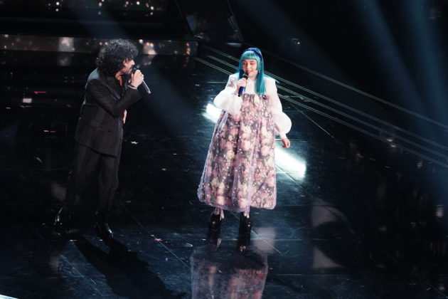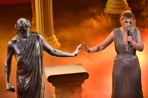 Achille Lauro: voto 8 – Segnali di ripresa dal fronte. Per la terza serata ha scelto il mood antica Grecia, presentandosi con in testa la simbolica corona d’alloro e indosso solo un peplo dorato, a coprire la pelle argentata. Un po’ divinità dell’Olimpo, un po’ aedo, fa il suo ingresso introdotto dalla voce suadente di Monica Guerritore e poi, dal piedistallo, duetta con Emma, facendo breccia nei cuori dl pubblico. Tra colonne bianche e foglie d’orate seminascoste da una coltre leggera di fumo, Achille Lauro è quasi una visione. Questa volta ci è piaciuto.