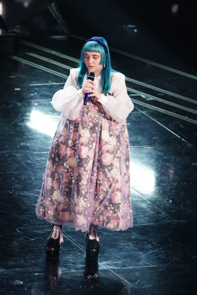 Gaia: voto 5 – Le frange devono piacere molto alla giovane cantante, altrimenti non si spiega che c’azzeccano su un paio di guanti di pelle ceruleo messi a completo di un austero abito della stessa tinta dal sapore vintage. Pr non parlare poi dei sandaletti bianchi, perfetti per la passeggiata sul lungomare di Sanremo, un po’ meno per il palco dell’Ariston.