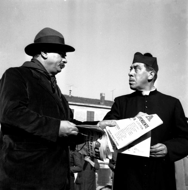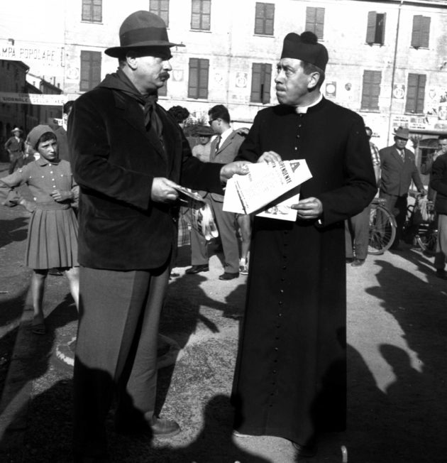 Una quindicina di libri tra raccolte di racconti e romanzi venduti in oltre 20 milioni di copie, sette film (cinque “ortodossi” e due più tardi), riduzioni televisive in due continenti, una serie radiofonica per la Bbc e perfino la pubblicazione di storie a fumetti. Tutto ciò, in estrema sintesi, è la storia del fenomeno Don Camillo e Peppone, personaggi frutto della fantasia del giornalista e scrittore Giovanni Guareschi, che prese il via già nel 1948 quando i due blocchi – quello atlantico sostenuto dagli Stati Uniti e quello comunista legato all’Urss – si fronteggiavano un po’ ovunque. Compreso Brescello, piccolo paese della Bassa Reggiana, vicino al Po, dove al sindaco comunista (Giuseppe Bottazzi detto Peppone) si opponeva (ma fino a un certo punto) il parroco, Don Camillo: anche se si trattava di un microcosmo, il confronto tra i due personaggi “di peso” fotografava la società rurale italiana del Dopoguerra, genuina, popolare e dove il rispetto per la persona veniva prima di ogni altra cosa.