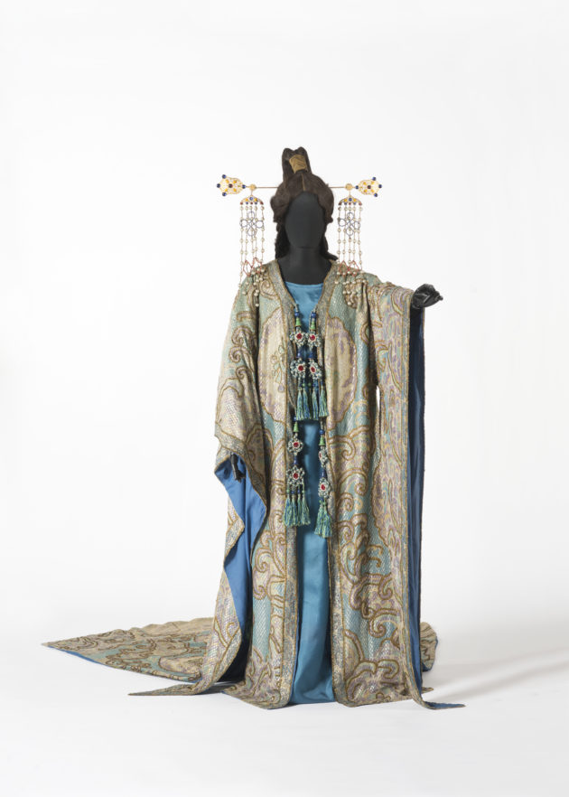 Il fortuito ritrovamento, dentro un baule, dei costumi e dei gioielli di scena, hanno permesso il concepimento di una mostra che, come scritto, intreccia i tessuti con la storia, l’arte, la lirica e i viaggi. Quelli veri e quelli di fantasia. Perché se da un lato Giacomo Puccini non aveva mai visitato l’Oriente – e aveva composto Madama Butterfly avendo negli occhi il falasco del Lago di Massaciuccoli e il profilo della “bella addormentata” che precede le Alpi Apuane, ossia il monte Grondilice, e la Turandot respirando il salmastro viareggino – Chini invece aveva vissuto per ben tre anni nel Siam decorando il Palazzo del Trono del Re Rama VI; da qui era poi tornato profondamente affascinato e con un nutrito bagaglio di manufatti artistici di stile e produzione cinese, giapponese, siamese che influenzarono la sua produzione artistica e, successivamente, la genesi figurativa delle scenografie per l’opera Turandot.