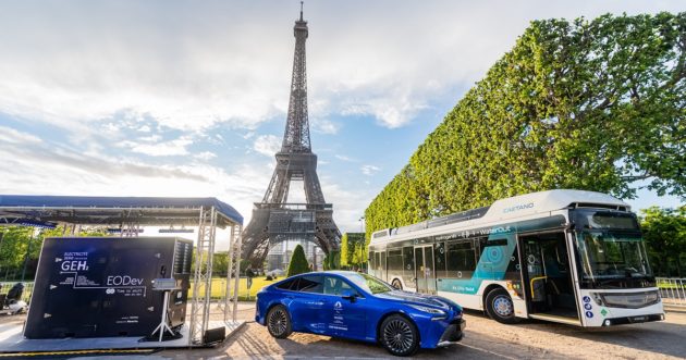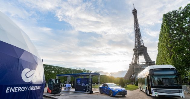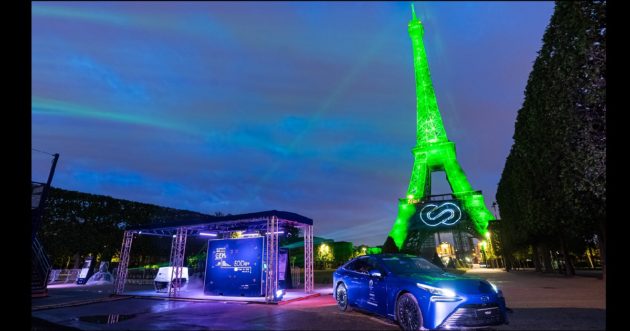 Il costruttore giapponese, che è stato scelto da Parigi come Mobility Partner ufficiale per la 33esima edizione dei giochi Olimpici e Paralimpici del 2024, è tra gli espositori dell’evento che si terrà fino al 30 maggio in Champs-de-Mars, e ha fornito le celle a combustibile di idrogeno rinnovabile certificato per alimentare il generatore GEH2. Una tecnologia, questa, sviluppata da EODev (Energy Observer Developments), che ha reso verde (in tutti i sensi, nella forma e nella sostanza) l’illuminazione della torre Eiffel e che fornisce energia all’intero villaggio Energy Observer, realizzato ai piedi della torre appositamente per riunire le aziende che propongono soluzioni – per la mobilità ma non solo – a idrogeno.