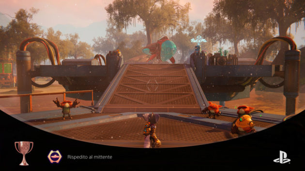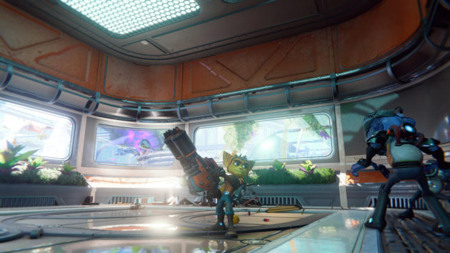 La trama è un ottima scusa per poter spaziare tra le ambientazioni e dare spazio alla creatività spostandoci da un porto di pirati a una jungla rigogliosa, Rift Apart non perde occasione per mettere in mostra la sua bellezza artistica permettendoci allo stesso tempo di ritornare a visitare location passate per poter sbloccare nuove armi e potenziamenti; è proprio dal punto di vista dei collezionabili che Rift Apart mostra una delle sue carte migliori oltre alla grafica, la varietà di armi a disposizione è enorme e i costumi sbloccabili oltre a donare varietà ai protagonisti ne aumentano le caratteristiche, permettendo di scegliere quello migliore per ogni occasione.