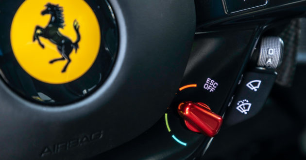 Difficile guardare la strumentazione quando le cifre salgono e scendono così: bastano l’head-up display e i led sul volante per guidarti nella danza continua dei paddles perchè il powertrain impone velocità da Hypercar. L’assetto con la variante Assetto Fiorano e le gomme semi-slick è adatto anche ai cordoli ed alla ormai proverbiale prontezza dello sterzo Ferrari si aggiunge il lavoro dei motori elettrici. Oltre a fornire la potenza aggiuntiva in accelerazione sono infatti determinanti in curva perchè la gestione del torque vectoring azzera il sottosterzo in uscita permettendo di anticipare l’apertura del gas. In quel frangente poi il ritardo di risposta è totalmente assente perchè il terzo motore elettrico copre il lag delle turbine. A gestire l’intero dialogo tra ibrido, termico, stabilità, trazione e feeling di guida c’è l’ESSC 1.0, ovvero il nuovo pacchetto elettronico sviluppato in funzione della presenza dell’ibrido e dell’asse anteriore elettrico denominato RAC-E (Regolatore Assetto Curva Elettrico) e creato partendo dall’SSC 6.1 della F8 Tributo.