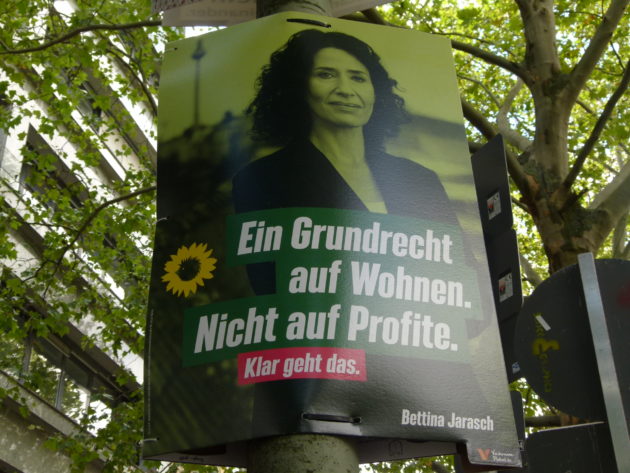 Un movimento dal basso di associazioni ha prodotto un referendum contro le grandi immobiliari, che si svolgerà in contemporanea con le elezioni. La proposta è di far tornare pubblica la proprietà di migliaia di appartamenti che precedenti amministrazioni hanno venduto a grandi società. Si parla anche di “esproprio”. Il referendum passerà perché è frutto di una raccolta di firme gigantesca (circa un berlinese su dieci ha firmato, in tempi di lockdown) e perché la condizione di inquilino è vissuta dalla stragrande maggioranza dei berlinesi. Oltre l’80% delle abitazioni è in affitto. Sui manifesti della campagna elettorale i partiti non danno indicazioni di voto sul referendum.
