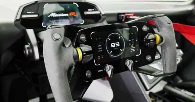 La batteria da 80 kWh di capacità è dotata di un avanzato sistema di recupero dell’energia ed è raffreddata a olio: per ricaricarla dal 5 all’80% bastano 15 minuti. Sicché la Mission R scatta da zero a 100 km/h in meno di 2,5 secondi e tocca una velocità massima superiore a 300 km/h. Mentre in pista può raggiungere le stesse prestazioni sul giro dell’attuale Porsche 911 GT3 Cup. Fra le chicche da segnalare ci sono pure la struttura del tetto di carbonio con funzione di gabbia di sicurezza e la carrozzeria di plastica rinforzata con fibra naturale (NFK), impiegata per il frontale, il diffusore e le minigonne, oltre che per alcuni elementi degli interni.