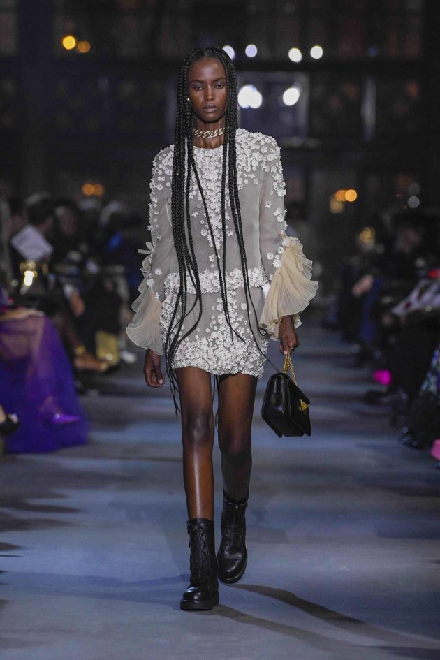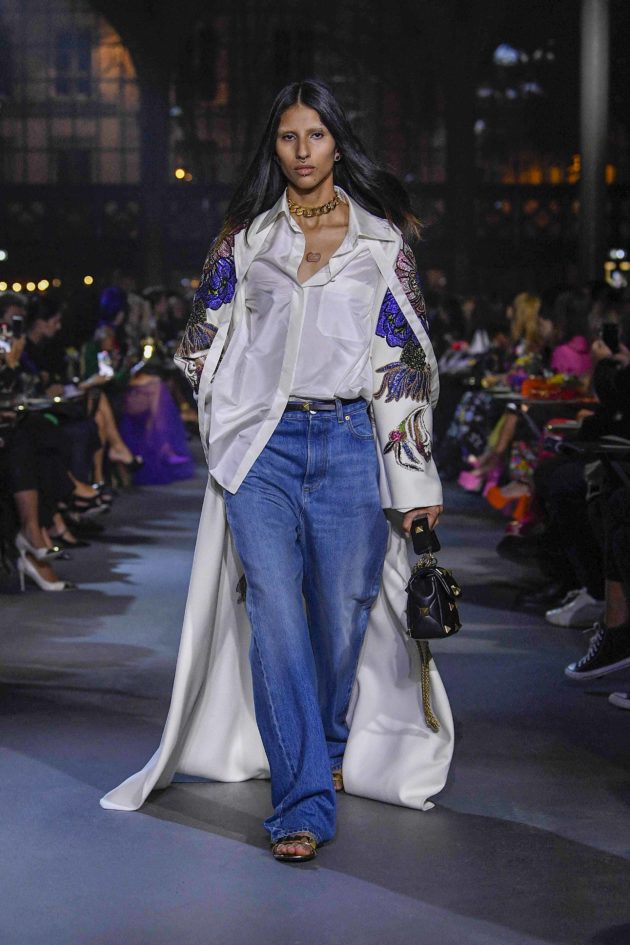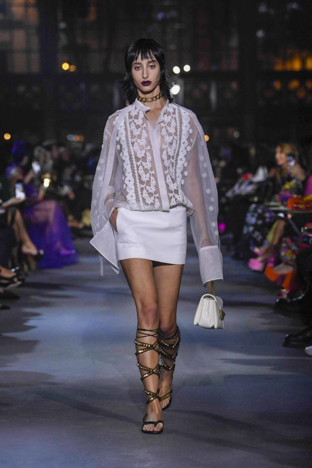 Così, ha scelto cinque pezzi iconici di Valentino Garavani e li ha riletti con rigore filologico per riproporli in chiave contemporanea, un viaggio nel tempo e nello spazio che li rende magicamente. portatatori di un messaggio universale. “Ho rieditato questi pezzi esattamente come erano perché vederli così sulla strada è importante -prosegue Piccioli -. Non vuol dire fare street style, vuol dire portare Valentino in strada e sporcarlo di vita. I capi possono essere esattamente gli stessi ma indossati in maniera diversa, da persone diverse, diventano altro”. C’è l’iconico cappotto maculato abbinato a un croptop con shorts e anfibi; l’abitino bianco di Marisa Berenson indossato da una modella di colore; e ancora, i lunghi abiti a fiori fotografati da Chris von Wangenheim diventano la suggestione che dà vita a stampe e fantasie floreali declinate ora in camicie over da giorno e ora in preziosissimi abiti da sera. È omaggio all’archivio anche il denim, portato in passerella per la prima volta da Valentino nel 1985 e ora tornato protagonista accostato a camicie bianche e preziose: “Ho voluto shiftare un brand che nasce dalla Couture nell’oggi, mantenendone i codici ma abbracciando una contemporaneità diversa. Di passare da un concetto di esclusività a uno di community. Voglio che Valentino si riempia di vita. In questo momento la bellezza è fatta di umanità non di perfezione estetica. Prima le persone che vestivano Valentino erano quelle che avevano un certo tipo di vita, ora condividono invece dei valori. Non è una bellezza fisica, ma di umanità, di persone diverse: questi capi li possono indossare uomini e donne indifferentemente, a prescindere dalla taglia o altro”. E basta guardare agli ultimi red carpet per trovarne conferma: Valentino ha vestito Zendaya ma anche Frances McDormand e Whoopi Goldberg, solo x citarne alcuni.