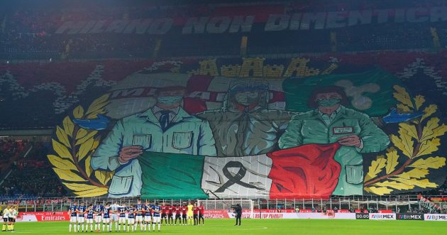 “Milano non dimentica”: la coreografia della curva del Milan per i lavoratori del Covid – FOTO