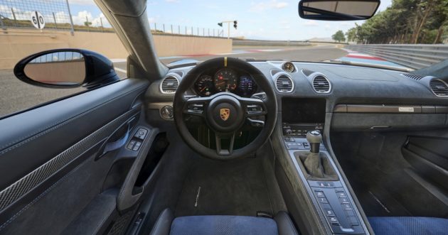 Stavolta in casa Porsche non sono scesi a quei “compromessi familiari” che hanno precedentemente spinto l’azienda a non potenziare troppo la Cayman per non infastidire la più iconica 911. Ora, però, dietro l’abitacolo della nuova GT4 RS pulsa un motore boxer 6 cilindri di 4 litri di cubatura e ben 500 CV di potenza massima, chiamati a spingere un peso a vuoto contenuto in 1.415 kg. Un valore ottenuto grazie a elementi come il cofano anteriore di carbonio, il materiale fonoassorbente ridotto al minimo e alleggerimenti mirati per moquette, lunotto e pannelli delle portiere.