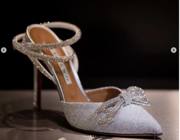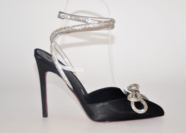 - Sempre per restare in tema look delle Feste, le fashioniste apprezzeranno sicuramente le decolletè con fiocco e allacciatura alla caviglia in strass di Albano Shoes. Viste in tv al Grande Fratello Vip e sui social, impossibile non innamorarsene: ci sono nere, argento, blu, leopardate e rosa, tutte super sparkling. 350 euro.