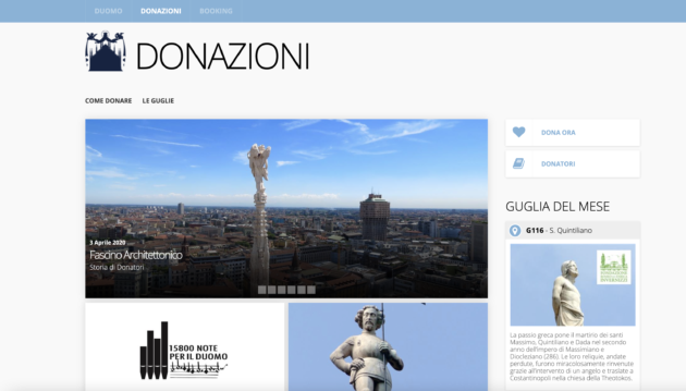 - Una guglia del Duomo di Milano. Con il progetto della Veneranda Fabbrica del Duomo “Adotta una guglia” si possono fare donazioni di qualsiasi importo, da 1 euro fino anche a 100mila, per contribuire a sostenere gli interventi di restauro più urgenti e associare simbolicamente il proprio nome ad una delle guglie della Cattedrale. Per i “Grandi Donatori” c’è proprio la possibilità di scolpire il proprio nome nel marmo.