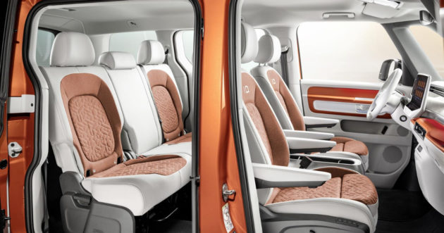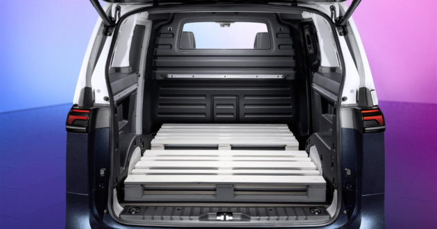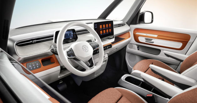 All’interno la ID.Buzz può ospitare 5 passeggeri e offre una capacità di carico di 1.121 litri, che diventano 2.205 ribaltando la seconda fila di sedili. L’edizione Cargo, invece, ha tre posti a sedere davanti e una paratia che separa abitacolo e vano di carico, che offre un volume utile di 3,9 m2, sufficiente per stipare due europallet (carico utile di 650 kg). Successivamente, esordiranno varianti a sei e sette posti, oltreché quella a passo lungo.