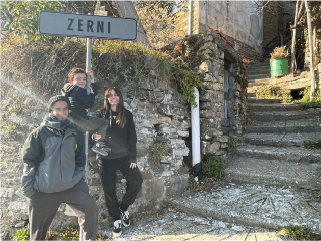Il primo anno si è trasferito solo Antonio per iniziare a fare i lavori e predisporre il loro trasferimento. Ma nel febbraio del 2020, a causa del Covid, il processo ha avuto accelerata repentina e hanno deciso di spostarsi tutti e tre in maniera definitiva a Zerni. Inizia così la nuova vita. Ormai sono un anno che si sono trasferiti li. Antonio, Roberta e Martino stanno riattivando i terrazzamenti agricoli e procedendo con la ristrutturazione di alcuni immobili per offrire anche ospitalità a cui vuole passare dei momenti, dei giorni, delle settimane di silenzio, di lentezza, di benessere.