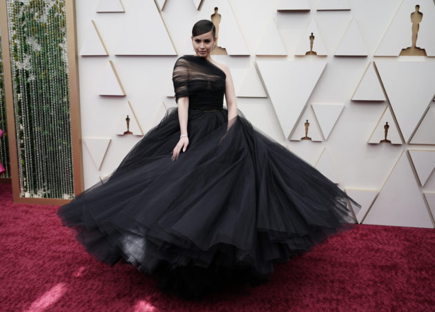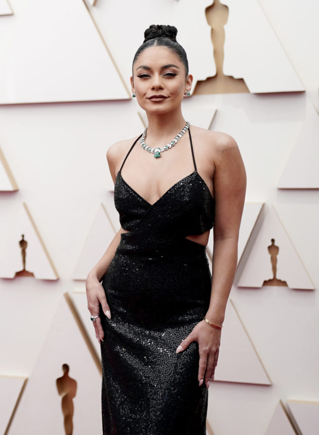 Fatina sexy Lily James, in un abito rosa cipria vintage, con lungo spacco e ricami in pizzo di Atelier Versace. La griffe della Medusa ha vestito anche Aunjanue Ellis, che ha scelto un abito arancione custom made in organza, tulle e chiffon, che ha richiesto 1.300 ore di lavorazione e Simu Liu, che ha calcato il tappeto rosso in un completo di lana color papavero con dettaglio harness. Prada ha invece vestito Lupita Nyong’o, con un abito dorato in paillettes 3D, impreziosito da ametiste e topazi; Rami Malek, Joachim Trier e Eskil Vogt, tutti e tre rigorosamente in smoking. Encomio per Penelope Cruz, quest’ultima accompagnata dal marito Javier Bardem: gonna ampia in raso blu notte (con tanto di tasche), scollo a bustier con bottoncini coronato da un maxi-fiocco gioiello. Sempre Chanel ma decisamente tutt’altra cosa rispetto al look di Kristen Stewart. Merita poi un’attenzione particolare l’attrice e cantante Sofia Carson, l’ex diva di Disney Channel qui in veste di presentatrice della serata: per lei un sontuoso abito di tulle nero monospalla con drappeggio sul corpetto e maxi gonna che porta la firma riconoscibilissima di Giambattista Valli Couture. Promossa a pieni voti anche l’altra ex diva Disney e presentatrice, Vanessa Hudgens: prima ha calcato il red carpet con uno scintillante abito a sirena di Michael Kors collection con tagli cut out sui fianchi, poi – al party di Vanity Fair – ha sfoggiato un meraviglioso abito sempre nero in tulle e paillettes by Valentino.
