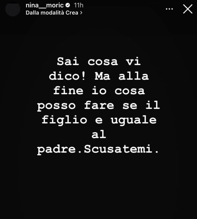 Un appello disperato quello che Nina Moric ha lanciato via Instagram stories ieri 19 marzo. Disperato, ma anche smentito dal diretto interessato: il figlio Carlos Maria. Andiamo con ordine. “Mi vergogno di fare questo appello. Carlos soffre di psicosi transitoria acuta. Deve essere curato! Non ha il telefono e nessuno mi risponde dalla parte paterna. Se non prende i farmaci associati all’analisi comportamentale cognitiva sarà la sua fine! Vi prego, aiutatemi, mio figlio ha bisogno! Per favore”, ha scritto la showgirl, ex moglie di Fabrizio Corona.