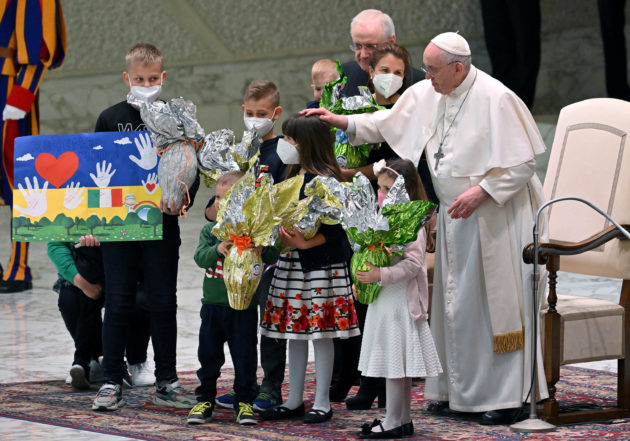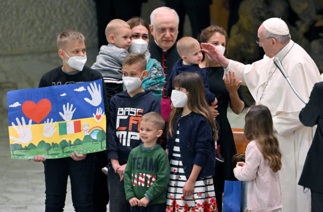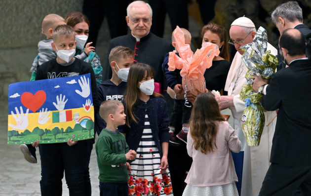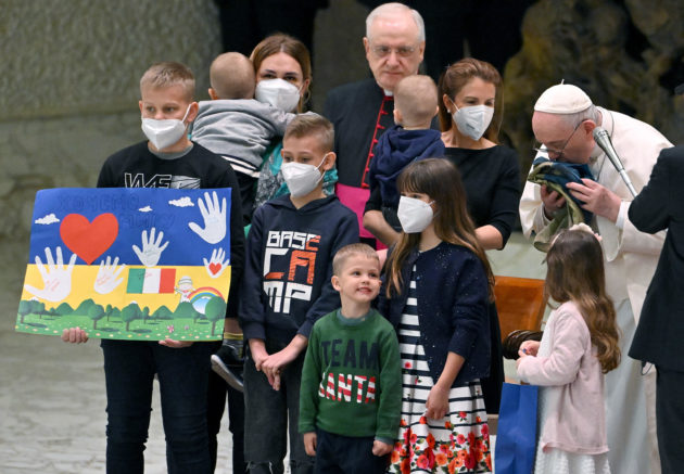 “Le recenti notizie sulla guerra in Ucraina, anziché portare sollievo e speranza, attestano invece nuove atrocità, come il massacro di Bucha: crudeltà sempre più orrende, compiute anche contro civili, donne e bambini inermi. Sono vittime il cui sangue innocente grida fino al cielo e implora: si metta fine a questa guerra! Si facciano tacere le armi! Si smetta di seminare morte e distruzione”. All’udienza generale del mercoledì nell’Aula Paolo VI, Papa Francesco è tornato nuovamente a condannare la guerra in Ucraina. “Ieri, – ha raccontato Bergoglio ai fedeli – proprio da Bucha, mi hanno portato questa bandiera. Questa bandiera viene dalla guerra, proprio da quella città martoriata, Bucha. E anche, ci sono qui alcuni bambini ucraini che ci accompagnano. Questi bambini sono dovuti fuggire e arrivare a una terra straniera: questo è uno dei frutti della guerra. Non dimentichiamoli, e non dimentichiamo il popolo ucraino. È duro essere sradicati dalla propria terra per una guerra”.