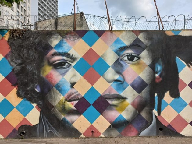 The 27 Club (il titolo dell’opera in inglese) è solo uno dei numerosi murales che l’artista brasiliano originario di San Paolo ha realizzato nella “grande mela” ma pochi sanno che si tratta di una reinterpretazione di un lavoro precedente, ancora visibile proprio nella sua città natale (qui la mappa per vedere dove si trovano gli altri murales di Kobra a New York). Sì, perché l’opera prima del Club 27 si trova nel quartiere di Pinheiros, centro della movida notturna di San Paolo, città nella quale Carlos Eduardo Fernandes (Kobra è il nome d’arte) è nato il 1 gennaio 1976. Nell’opera brasiliana, oltre ai già citati cinque nomi noti internazionalmente, troviamo anche Jean-Michel Basquiat, un artista statunitense di origine haitiana e portoricana morto nel 1988 e conosciuto anche come SAMO.