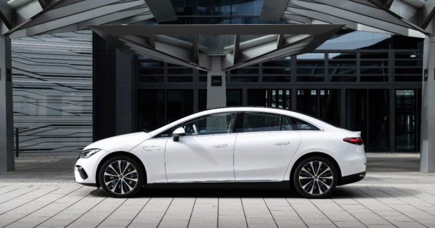 Al primo colpo d’occhi viene spontanea una riflessione indirizzata verso quelle persone che dicono: elettrico è sinonimo di anonimo. Beh, forse è tempo di ricredersi: le linee sono filanti, avvolgenti, eleganti, capaci di tagliare l’aria con un CX pari a 0,22. Il muso richiama la più sportiva AMG GT, i fianchi muscolosi e quel profilo che vuole essere un affettuoso omaggio a quella coupè che negli anni ’80 faceva perdere la testa a tanti giovani rampanti. E poi c’è il posteriore, con la sua fascia luminosa, che disegna la firma di tutte le stelle 100% elettriche del firmamento di Stoccarda.