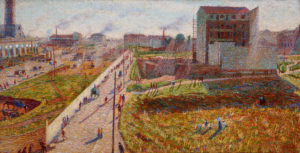 Umberto Boccioni – Meriggio. Officine a Porta Roma, 1910 – Olio su tela, 75×145 cm – Collez. IntesaSanpaolo Gallerie dItalia – Piazza Scala, Milano