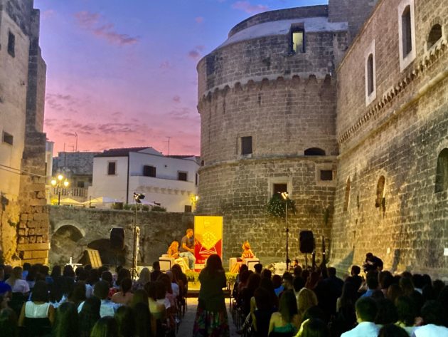 I bastioni del castello cinquecentesco di Corigliano D’Otranto. Il trionfo del barocco di Nardò. E ancora, il porto di Gallipoli, con i suoi pescherecci e la chiesetta del Canneto, il cortile del santuario della Madonna della Coltura di Parabita con il suo imponente campanile. Sono solo alcune delle suggestive location che fanno da sfondo al Salento Book Festival, la rassegna letteraria itinerante organizzata dall’associazione culturale Festival Nazionale del Libro che ormai da dodici anni anima le estati salentine. Da Giovanni Allevi e Nicola Gratteri, a Francesca Michielin, Antonio Caprarica, Rita Dalla Chiesa, Andrea Delogu, Luca Bianchini, Francesca Neri, Gianluigi Nuzzi, Veronica Pivetti, Giorgia Soleri e Iva Zanicchi, sono tantissimi gli ospiti in cartellone nelle serate del Festival. Un’iniziativa nata da un’idea di Gianpiero Pisanello e diventata nel corso degli anni un appuntamento fisso unico in Italia nel suo genere, emblema del fermento culturale che anima questo lembo di terra nell’estremo tacco d’Italia.
