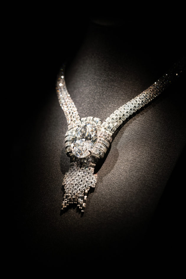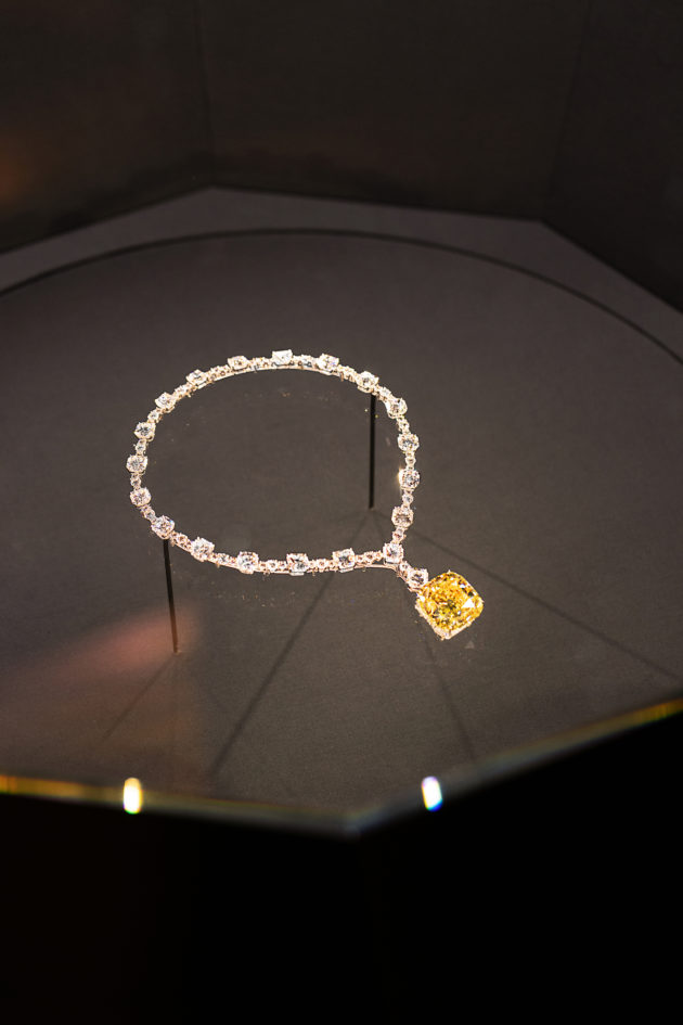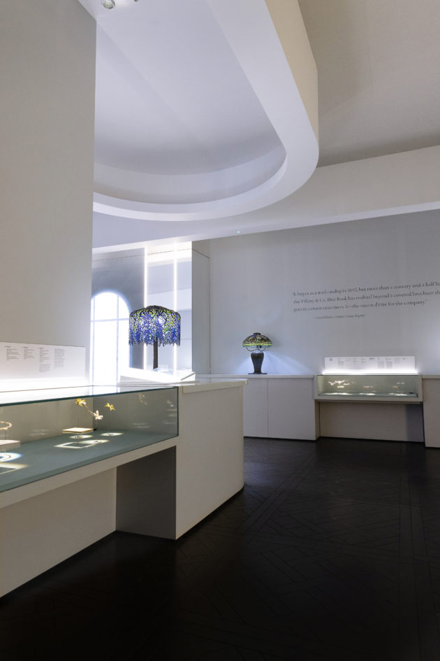 C’è quello in cui, grazie a Snapchat, inquadrando un QR code si può essere fotografati indossando il gioiello più raro e prezioso, virtualmente, sì, ma la foto resta, così come il sogno di possederlo. E poi si attraversano stanze in cui sono raccolti oggetti che hanno fatto la storia di Tiffany e della moda. La maison è stata in grado di dare la sua impronta rimodellando e trasformando le collezioni di gioielli di proprietà delle case reali europee. Nel 1887, la corona francese vendette preziosi che per almeno un terzo arrivavano da Tiffany & Co. Nel 1878 in Spagna venne venduta una sua collana con smeraldo che pare appartenesse alla collezione privata della regina Isabella II. E sempre in quel periodo, Charles Lewis Tiffany lanciò la moda di abbinare diamanti a perle, una scelta particolarmente apprezzata dalle donne americane che volevano eleganza e stile, anche in casa, dove, dal ‘900, non poteva mancare la famosa lampada in vetro colorato “Wisteria”.