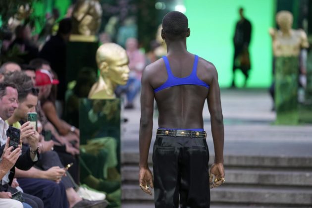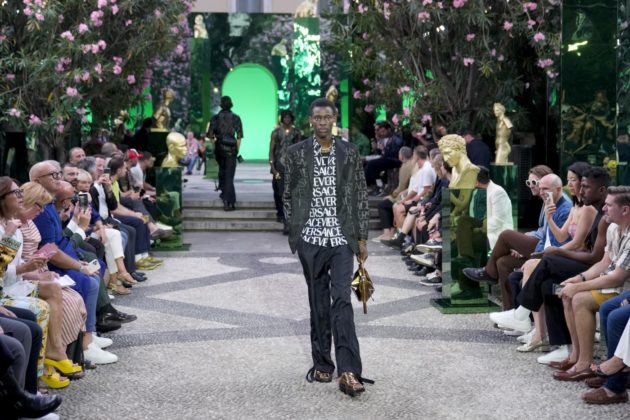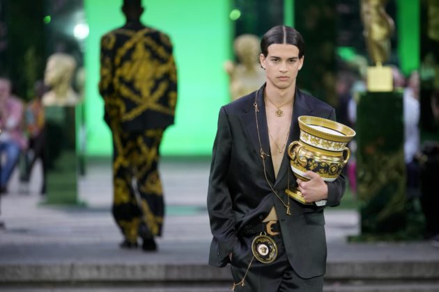 Un po’ come l’uomo di Donatella Versace, che sfoggia con nonchalances un trikini in tinte fluo a mo’ di body sotto a un pantalone sartoriale o un trench in seta rosa antico, e, ancora, con una felpa slacciata, in un gioco di contrasti e contrapposizioni che segna la tendenza per la prossima P/E 2023 secondo la casa della Medusa. “Quando lavoro – spiega la stilista in una nota – penso sempre alla Generazione Z ed il loro entusiasmo nel mettere insieme idee contrastanti. La pop art incontra il classicismo: un contrasto essenziale per me, che fa riflettere e coinvolge”. E così, ecco la sua varia gioventù che abbina canotte in pizzo trasparente a pantaloni di pelle traforata, le storiche camicie di seta logatissime ora in tinte fluo con pantaloni oversize, per un guardaroba versatile e coloratissimi che ha, appunto, nel trikini maschile il suo capo cult. È intrisa di freschezza giovanile anche la prima collezione Uomo di Filippo Grazioli, il designer marchigiano che nel marzo scorso ha preso le redini creative di Missoni. Per lui “buona la prima”: il debutto con il menswear è assolutamente promosso a pieni voti perché è riuscito a dare una sferzata di grinta al brand senza snaturarne affatto l’heritage, anzi, valorizzandone al massimo l’attitudine casual. L’iconico zig zag si fa maxi e va ad illuminare attraverso una palette cromatica essenziale e funzionale felpe e giacche, con il bianco a fare da contraltare. Lo stesso genuino entusiasmo fanciullesco lo ritroviamo anche sulla passerella di Emporio Armani, dove “Re” Giorgio ha dato libero sfogo alla sua fantasia immaginando una collezione che ci trasporta con il pensiero in una giungla incontaminata à la Gauguin, con un guizzo reggae perché questi capi – così come la vita – sono un contenitore di possibilità, il mood della vacanza già in città. Così, la camicia impalpabilissima diventa l’emblema della collezione, assieme al cappello alla pescatora super easy “perché vestirsi è anche divertirsi”, dice lo stilista che per la sua linea giovanile concede anche camice cropped e bermuda cortissimi. Un po’ come quelli in pelle che vanno a comporre la nuova “tutina” di Miuccia Prada e Raf Simons, capo simbolo di tutta una certa cultura giovanile nord europea degli anni ’90.