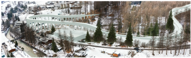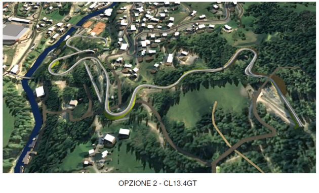 IL MOSTRO – Ecco materializzarsi lo spettro di un mostro in calcestruzzo, praticamente un viadotto lungo 250 metri e alto 20, che occuperebbe un sesto della lunghezza complessiva della pista. È questa la conformazione finale a cui è arrivata l’evoluzione del primo progetto (nuova sigla CL10.15.2GT), per evitare che i bob si trasformassero in proiettili lanciati a velocità folle. Un pugno nello stomaco. Per questo è stata elaborata (grazie ai tedeschi) una soluzione alternativa (sigla: CL13.4GT) che è finita sul tavolo delle decisioni finali. Le variazioni sono significative: viene introdotta una chicane a forma di 8, tutta a nord della palestra di roccia. “I campi da tennis non saranno oggetto di intervento, la palestra di roccia non sarà all’interno del tracciato e le costruzioni a sud non saranno interessate”. Questo il risultato, che sembra salvare capra e cavoli, ma con l’effetto che le curve da 16 diventano 18, la lunghezza del tracciato di gara cresce da 1.495 metri a 1.512 metri, la lunghezza totale della pista da 1.982 metri a 2.001 metri. I terrapieni per le nuove curve sono comunque impressionanti, anche se si assicura che verranno coperti d’erba.