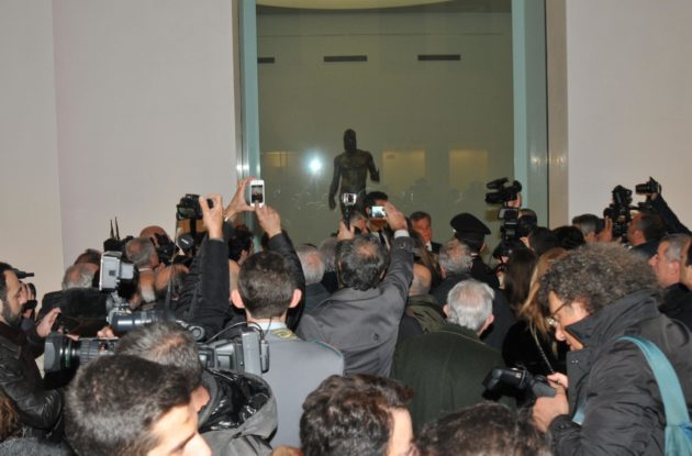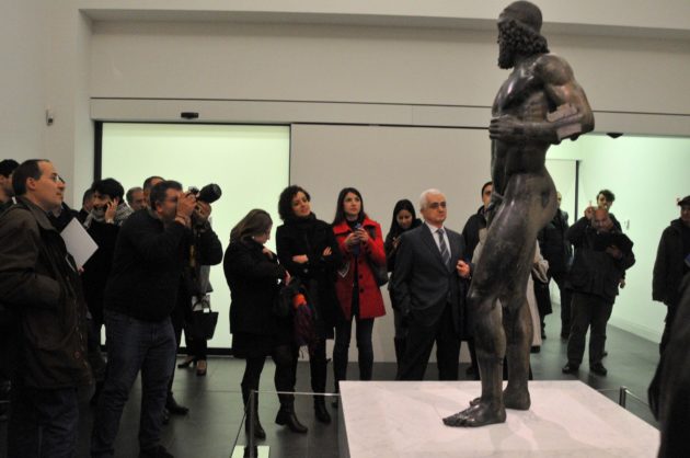 Venne messo su un gruppo di esperti con competenze diverse, costituito da bravissimi specialisti, nel museo archeologico di Reggio Calabria; si progettarono nuovi strumenti che ancora allora non esistevano, quindi praticamente venne per la prima volta ideato e attuato un restauro di tipo laparoscopico e attraverso questa metodologia la terra di fusione è rimasta, venne letta e tagliata scavata per sezioni trasversali progressive e alla fine tutte queste informazioni morfologiche che venivano rilevate gradualmente ci permisero di capire esattamente come erano andate le cose. Questo intervento di rimozione della terra di fusione, che alla fine pesò più o meno 40 kg per statua, durò due anni e mezzo e solo le ultime due settimane vennero dedicate al trattamento conservativo, cioè alla stabilizzazione di quei famosi fenomeni di corrosione interni che appunto avevamo determinato l’intervento. Quindi si trattò di un lavoro di ricerca archeologica, che comunque alla fine risolse anche problemi conservativi.