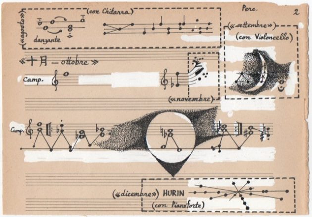 I primi tempi componeva su carta lucida con inchiostro di china. Se capitava una macchia, la grattava via, oppure ci sviluppava su un’idea musicale, teatrale: una sorta di alea alla John Cage.