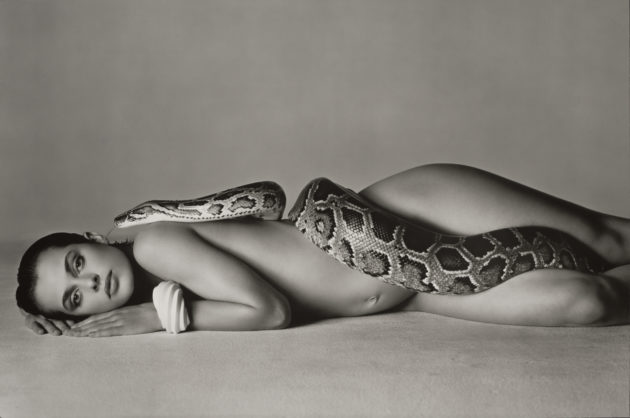 Dopo una prima parte dedicata ai grandi ritratti, ecco che, passando attraverso un suggestivo limbo ricavato dalle centinaia di copertine che il fotografo americano scattò per Vogue, si arriva alla seconda parte dell’esibizione, quella incentrata sul mondo della moda. È qui che troviamo l’iconica picture di Nastassja Kinski nuda avvolta da un serpente: “Si può avere uno sguardo diverso anche di fronte a immagini viste e riviste e notare, ad esempio, la perfezione di Avedon in una foto d’effetto ma minimalista come quella della Kinski, vedere come la curva del gomito riprenda esattamente quella del corpo del rettile”, spiega la curatrice Senf. Immaginate la fiducia, e la confidenza, che quella modella aveva con Avedon per abbandonarsi ad una posa del genere: alla base c’è, ancora una volta, lo stretto rapporto che lui tendeva ad avere con tutti i suoi soggetti, ma anche la visionarie con cui si approcciò alle modelle. È stato lui, infatti, colui che per primo ha dato loro “vita”, inserendo il movimento negli scatti di moda fino ad allora – parliamo degli anni Sessanta – ancora ingessati; e trasformando delle semplici mannequin in autentiche dive, oggetto del desiderio planetario. Con Avedon sono nate le top model, una su tutte Linda Evangelista, protagonista di tante campagne che scattò con Gianni e Donatella Versace: “Con Avedon c’era una fiducia assoluta. Fiducia nella sua luce. Fiducia nella sua narrazione. Fiducia nella nostra visione comune – ha raccontato Donatella Versace ricordando gli anni di lavoro con lui e il fratello -. Fiducia nel nostro rapporto. Avedon e Versace sono inseparabili. A me e a Gianni piaceva immensamente lavorare con Avedon. Ci piaceva inventare la storia della campagna insieme e osservarlo mentre lui e le sue incredibili modelle davano vita a quella storia. Con o senza gli abiti. ‘Iconico’ è un termine abusato ma queste immagini sono davvero iconiche”.