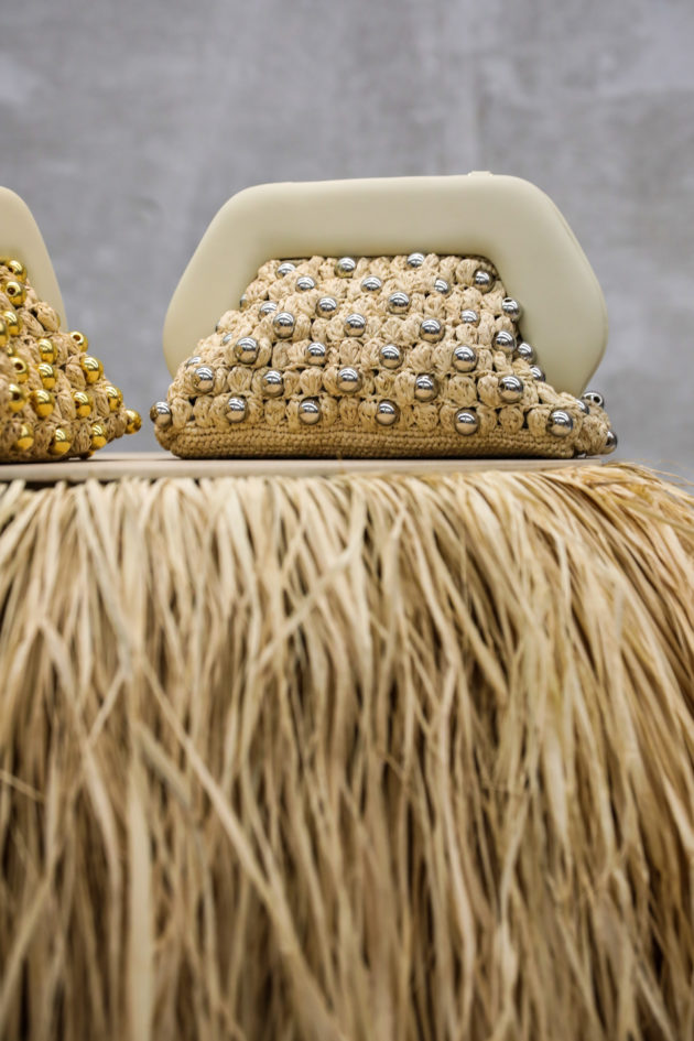 Non solo, la rafia proviene da una palma tropicale endemica di provenienza locale e la sua raccolta è un processo simile alla potatura, che contribuisce alla salute generale della pianta. Le fibre ottenute attraverso questo processo sono eccezionalmente elastiche e durevoli. Più in generale, ci spiegano ancora i due designer, la ricerca di nuovi materiali alternativi a quelli di origine animale o chimica resta al centro del progetto: così ecco che troviamo borse in cotone riciclato, nylon riciclato e apple fabric, un materiale eco-friendly ottenuto attraverso il recupero degli scarti dell’industria che lavora le mele. Questo brand, nato nel 2019 quando ancora non c’era la stessa consapevolezza riguardo al tema della sostenibilità ambientale, soprattutto nel mondo della moda, è la testimonianza che sostenibilità e creatività possono andare di pari passo: “Tutto il progetto è costruito partendo da questo: vegetali, riciclati e rigenerati, non solo per il prodotto in sé, ma anche per le fodere interne, realizzate con materiali riciclati al 100%, provenienti soprattutto da bottiglie di plastica Pet e nylon – ci spiega ancora la designer pugliese illustrandoci la nuova collezione -. L’obiettivo era e continua ad essere quello di stimolare un cambiamento positivo nella coscienza delle persone riguardo a questo tema”. E Themoirè non è semplicemente Made in Italy: “Le nostre borse sono Made in Milan, dove si trova il nostro headquarter. Questo ovviamente significa qualità, ma per noi anche sostenibilità: essere eco-friendly vuol dire essere trasparenti e noi vogliamo avere il controllo di tutta la catena produttiva”.