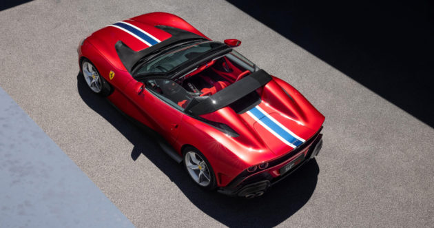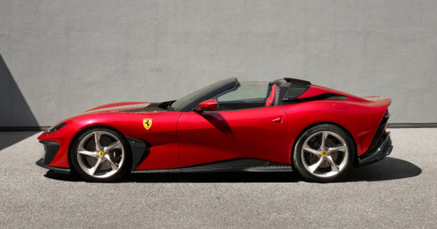 Il tetto? Assente: una scelta tecnica e stilistica che ha comportato “una grande opera di affinamento aerodinamico tramite simulazioni CFD, test in galleria del vento e prove dinamiche per garantire non solo il massimo comfort in abitacolo, ma anche un livello acustico e un wind feeling del tutto paragonabili a quello della vettura di ispirazione”, rivelano da Maranello.