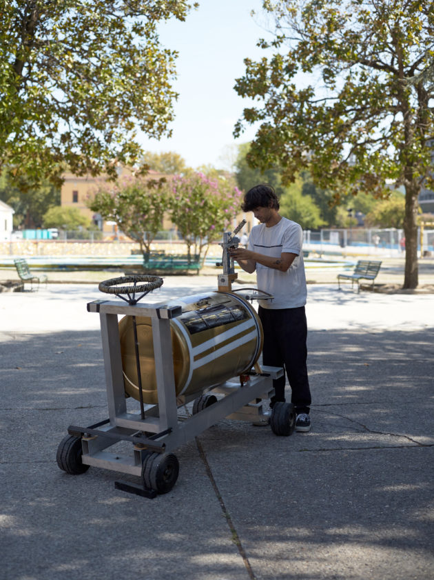 Mentre in “Battleground Beacon” (2021) – una torretta di controllo della polizia statunitense utilizzata per sorvegliare i quartieri a prevalenza afroamericana – fuoresce il suono di una Milano multietnica che mescola musiche del mediterraneo, conversazioni dalla Cina e inni dall’Ucraina. Una mostra che presenta, con coerenza, una marea di contraddizioni. Fino al 16 ottobre al Centro Balneare romano, Milano.