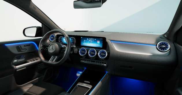 L’assistente vocale “Hey Mercedes” diventa ancora più veloce nella capacità di apprendimento e per dialogare. Alcuni comandi, ora, possono essere attivate anche senza il comando vocale, mentre l’MBUX può anche “spiegare” e assistere le funzioni del veicolo, come ad esempio quando si cerca la cassetta di pronto soccorso o si collega lo smartphone al veicolo. Gli interni sono stati rivisti, arricchiti: console high tech, due schermi da 10”25 e uno da 7”; volante in pelle nappa, cambio automatico DCT a 7 o a 8 rapporti, secondo il modello, di serie e telecamera posteriore. Aggiornato anche il pacchetto di assistenza alla guida: il sistema di mantenimento della corsia ora viene controllato in modo molto più confortevole utilizzando il controllo attivo dello sterzo invece della frenata unilaterale.
