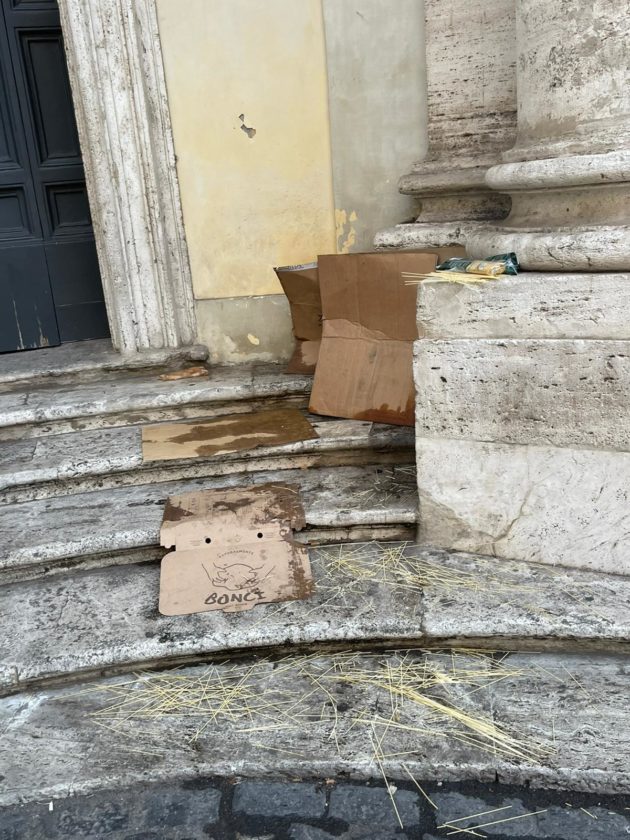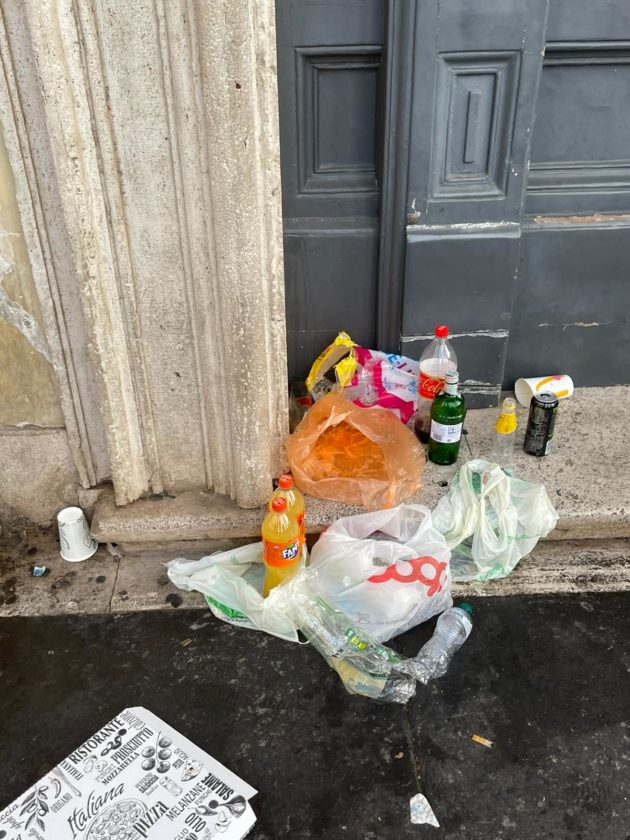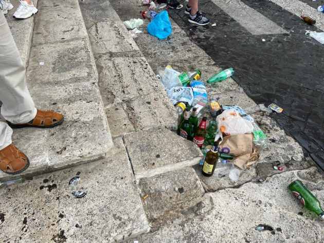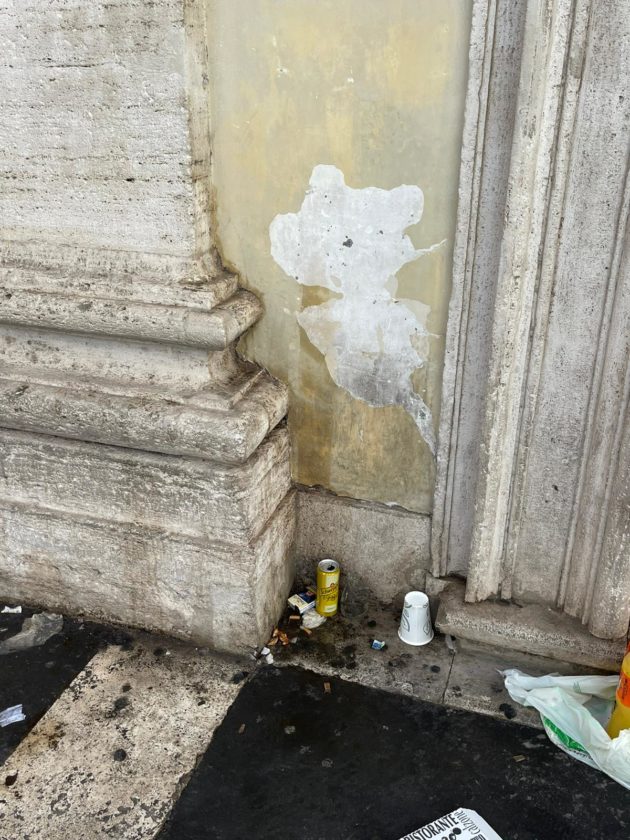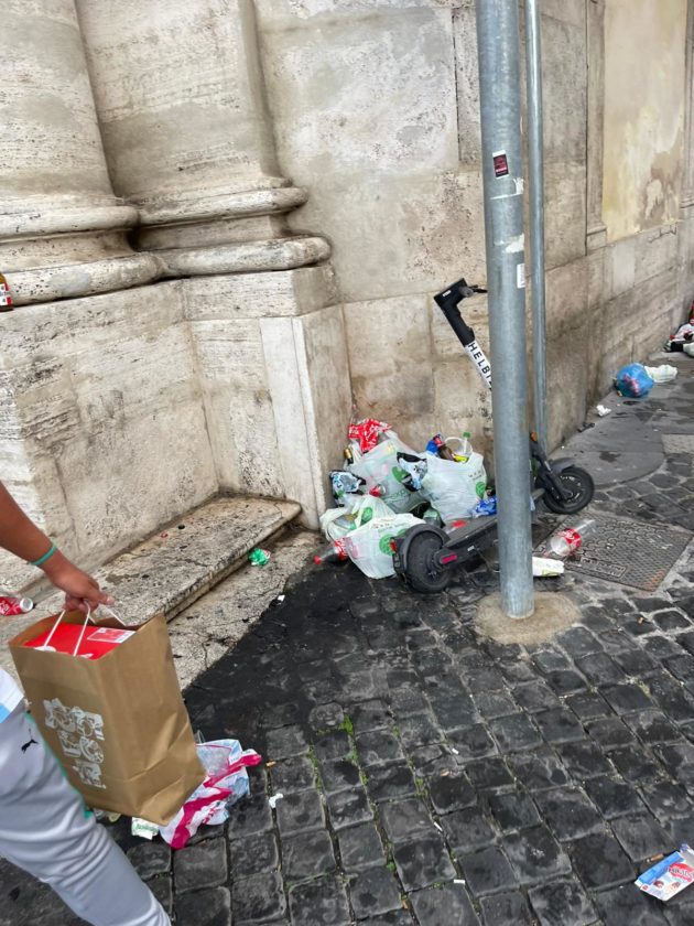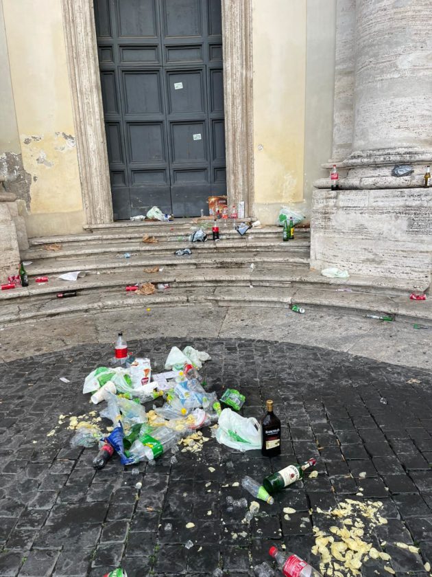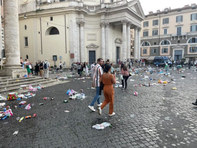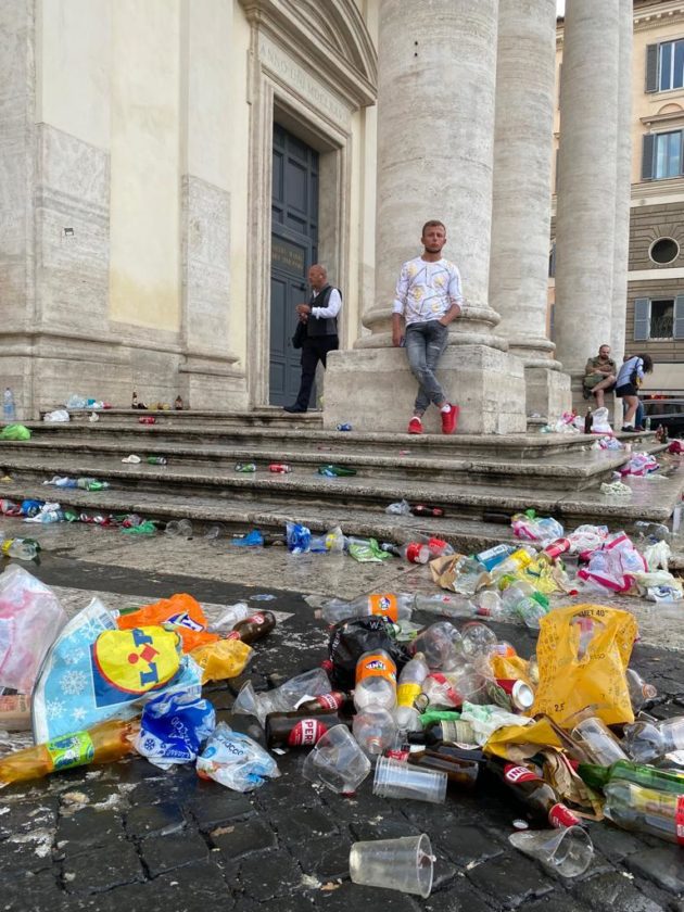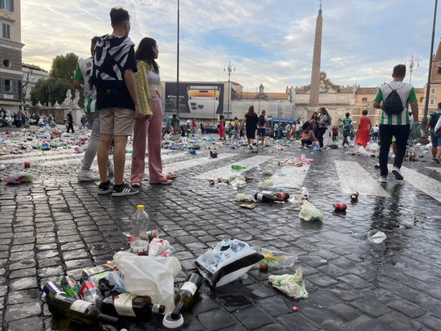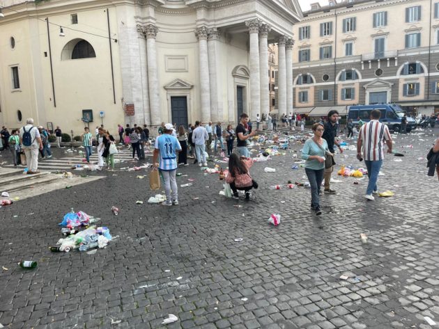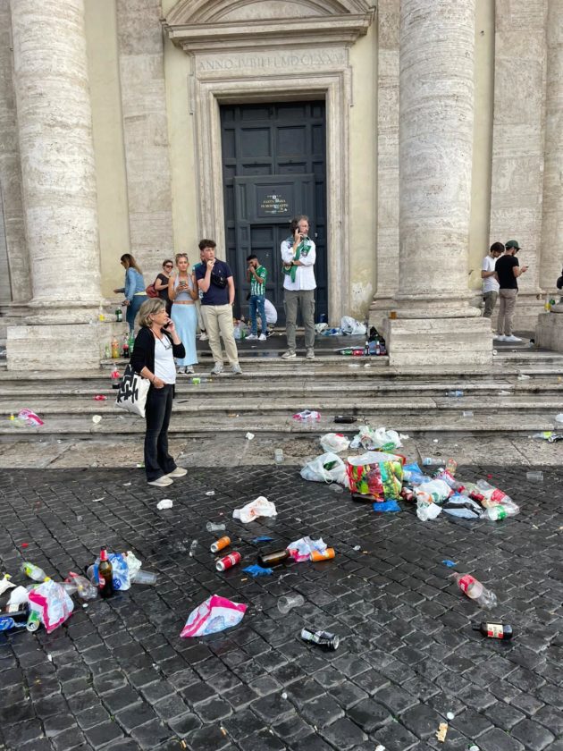 Roma, rifiuti e sporcizia in Piazza del Popolo dopo il passaggio dei tifosi del Betis Siviglia