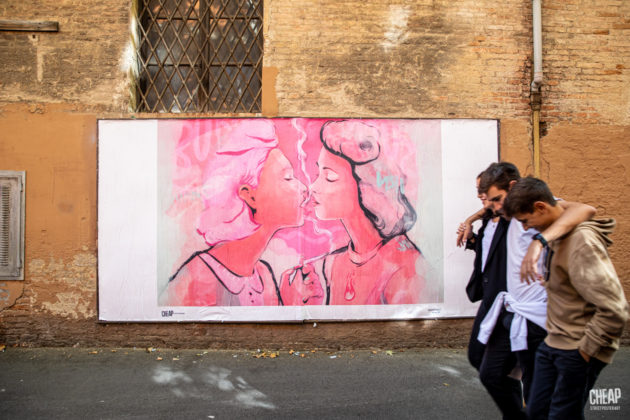 Un immaginario forte quello evocato da “Call for artists 2022“, progetto artistico che porta nelle strade di Bologna 150 poster realizzati da artiste contemporanee. Un’azione collettiva per mettere a fuoco la città e riappropriarsi degli spazi urbani. Attraverso l’utilizzo di carta e colla, Bologna diventa così una mostra a cielo aperto. Alla sua edizione numero dieci “Call for Artists” di Cheap, il laboratorio permanente di arte pubblica riconosciuto a livello internazionale, invade i muri con i soggetti (corpi, oggetti, personaggi, ambienti) rappresentati da centinaia di artiste di grafica, illustrazione, lettering, fotografia, collage e tecniche miste. Si sono cimentate su un tema preciso: “On fire”. E hanno elaborato la loro idea dell’essere in fiamme. Dall’emergenza climatica a quella economica e politica, dai sentimenti di rabbia e amore al fuoco del coraggio e della ribellione. Nelle strade di Bologna, all’interno delle bacheche posizionate lungo tutto il perimetro urbano, ogni poster installato diventa una scintilla per mettere a fuoco la città.