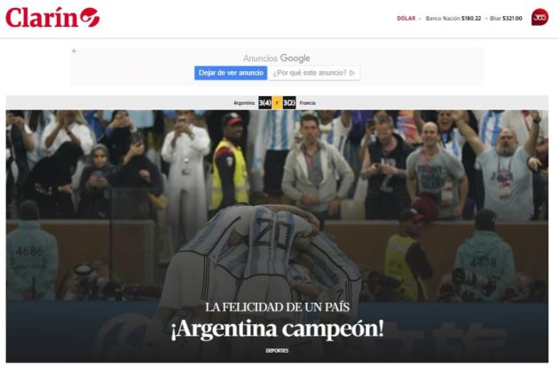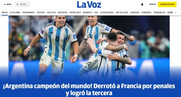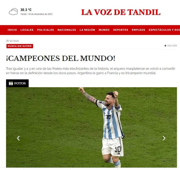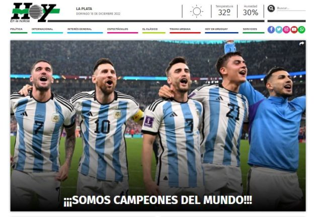 Le testate nazionali celebrano la Selección dell'eroe nazionale Leo Messi: "Siamo campioni del mondo!". Per la terza volta Buenos Aires può festeggiare la vittoria della Coppa del Mondo