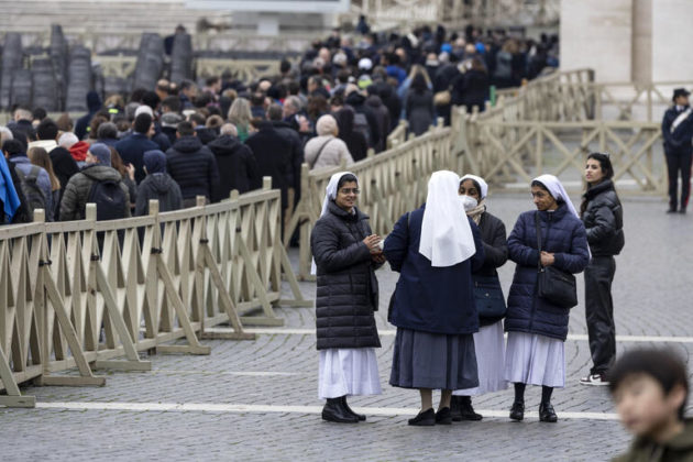 Nuns, priests and faithful gather in St. Peter's Basilica to pay their respects to Benedict XVI in the Vatican, 02 January 2023. Former Pope Benedict XVI died on 31 December at his Vatican residence, aged 95. Beginning at 9 am on 02 January and for three days until the funeral on Thursday, 5 January, the body will lay in state in St Peter's Basilica for veneration by the faithful. ANSA/MASSIMO PERCOSSI
