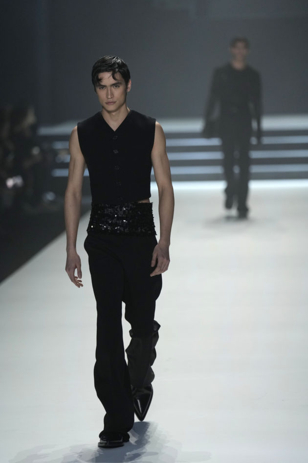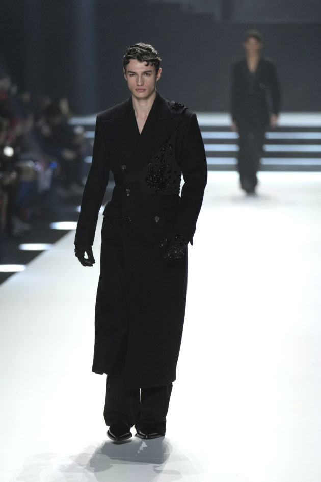 Un’operazione simile a quella compiuta da Domenico Dolce e Stefano Gabbana che – un po’ come Gucci – hanno sentito il bisogno di mettere un punto al percorso fatto finora e aprire una nuova fase creativa per il loro brand. In realtà, il due stilisti avevano intrapreso già nei mesi scorsi un lavoro di analisi e introspezione di quelli che sono i geni costitutivi del Dna di D&G, culminato con l’omaggio al loro archivio fatto nella collezione donna presentata a Milano lo scorso settembre. Il nero, interrotto da sprazzi di bianco e di nude, è il colore prescelto per fare tabula rasa e ripartire dall’essenza del loro lavoro, da quell’identità che impressero negli anni ’90 con le loro prime collezioni. ”Il nero è il Sud, è un nostro codice ed è – spiegano Stefano e Domenico – come disegnare una silhouette con una matita su un foglio di carta o come una foto in bianco e nero, eterna rispetto a quelle a colori”. “Essenza” è così il titolo della collezione uomo presentata in passerella sabato 14 gennaio: “Avevamo voglia di tornare al DNA, all’essenza del nostro marchio perché in questo momento abbiamo tutti gli occhi così pieni di immagini che ci siamo detti – racconta ancora il duo creativo – ‘facciamo ciò che siamo togliendo tutto’”. Il risultato è tutt’altro che minimale: sostanziale, piuttosto. Il focus è sui singoli pezzi e sullo studio che vi è dietro: dal cappotto lungo anni ’90 portato sopra ai boxer alle fusciacche dei primi 2000, dall’iconica giacca al corsetto come tocco di stile. Tutto, rigorosamente, in un nero profondo illuminato solo da tocchi di cristalli che riflettono la luce come le pietre laviche dell’Etna. Il tutto all’insegna di quella sartoria dietro al quale “c’è una visione, una vita: oggi tutto è spersonalizzato, compri un logo, non una filosofia, mentre noi – sottolineano gli stilisti – facciamo le cose per sentimento, non siamo una multinazionale e questa è una grande libertà”. Una dichiarazione d’intenti quantomai potente e controcorrente in questo mondo della moda dominato sempre più dalla rincorsa frenetica dei due colossi francesi del lusso, Kering e Lvmh, pronti a sacrificare la creatività per il guadagno.